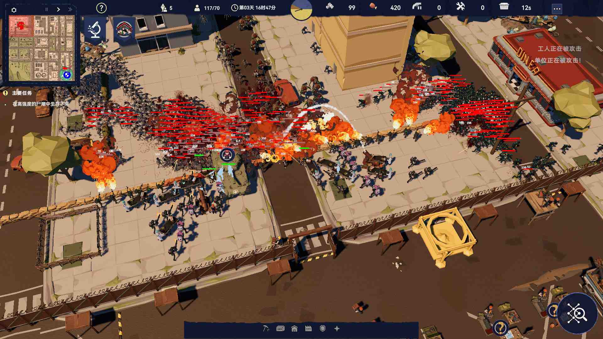 Let the roar of engines drown out the screams of the damned—because nothing says survival like overwhelming force. No civilians to please. No happiness meters. Just survival. Put every idle hand to work—craft weapons, grow crops, cook food, and build defenses. Raise walls, mount turrets, and create a safe haven sturdy enough to survive the endless nights. When the radar turns red and the dead flood your gates, it’s do-or-die time. Strategize your defense: deploy barricades, place towers, organize units into specialized squads, and launch coordinated assaults. Infantry, tanks, artillery—your tactics decide who walks away from this fight.