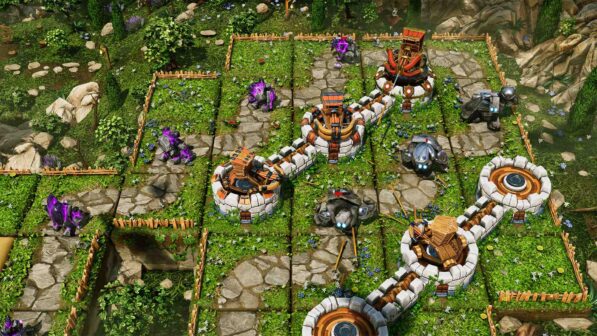 You’ll be able to manage a small economy, taking the risk of integrating farms into your mazes. Playable with a controller, this stylized PBR 3D game is optimized for large screens and 4K. In the game you build your towers to create a path for your enemies to follow – a maze builder type of TD. The longer the path, the better your chances of winning. New towers are made available as you progress, to deal with new enemies. There are three modes translated to “easy”, “medium” and “hard”. The medium mode works quite well, but you can back down to easy and try again, if you have trouble. You get 1 to 3 stars depending on how many lives you have left at the end.
