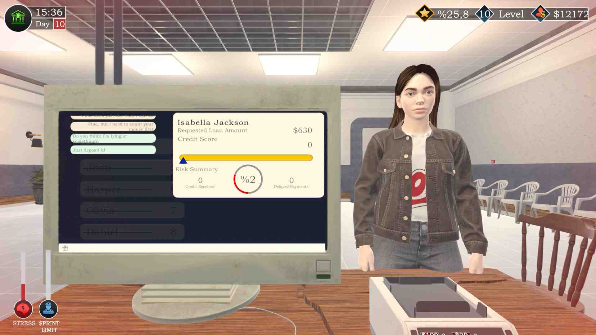 A successful bank is built on trust! Offer top-tier financial services, negotiate deals, and maintain a loyal client base. Manage large amounts of cash and ensure seamless banking transactions. Every bill counts! Bought this game around 5 ish pm and leveling been fine. One of the problem is the UI/UX. I was fine when i was by myself but once i started getting cashiers if seem to disrupt the UI. It freezes and studders. Like its competing with each other. Another problem is when you go into the second store.