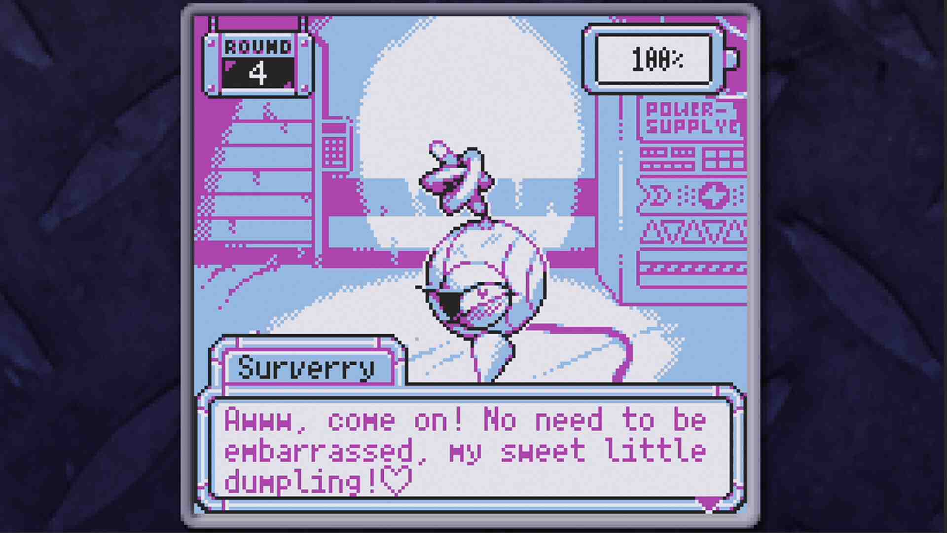 You, a mechanic, have picked up three robots from a scrapyard. In a dimly lit garage, you charge and revive the robots. After that, you can peek into their memories through dialogue. Or you can enjoy the robots’ reactions by applying high voltage to them. However, their batteries only have a short lifespan left. How they spend the rest of their lives is in your hands…This is an adventure game. You can select one of three robots and charge and converse with them within a time limit. How you treat them will change their reactions, and the ending of the game will change little by little along with their fate. You, the owner of the electrical outlet and the high-voltage switch, have the power to make your robots happy or unhappy.