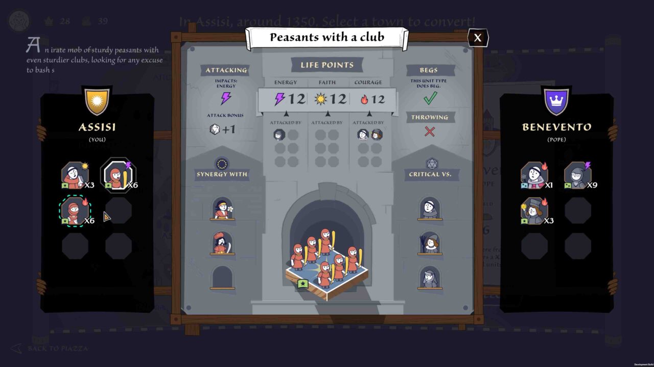 Even in death, there is an opportunity to learn. Should your sainthood be cut short, new challenges and strategies will await your new incarnation. The better you do, the sooner your saint will be remembered in the annals of history, so strive to spread your word further and faster than ever. Explore 14th century medieval Italy and its society: beauty and brilliance thrive in the shadow of turmoil, making Italy a masterpiece painted with both glory and grief – all they need now is a new Saint to guide them! One issue I have is that combat doesn’t feel that great and can be frustrating; units seem to ignore your directions half of the time and it can feel really slow even with a speed up button that admittedly doesn’t speed it up that much.