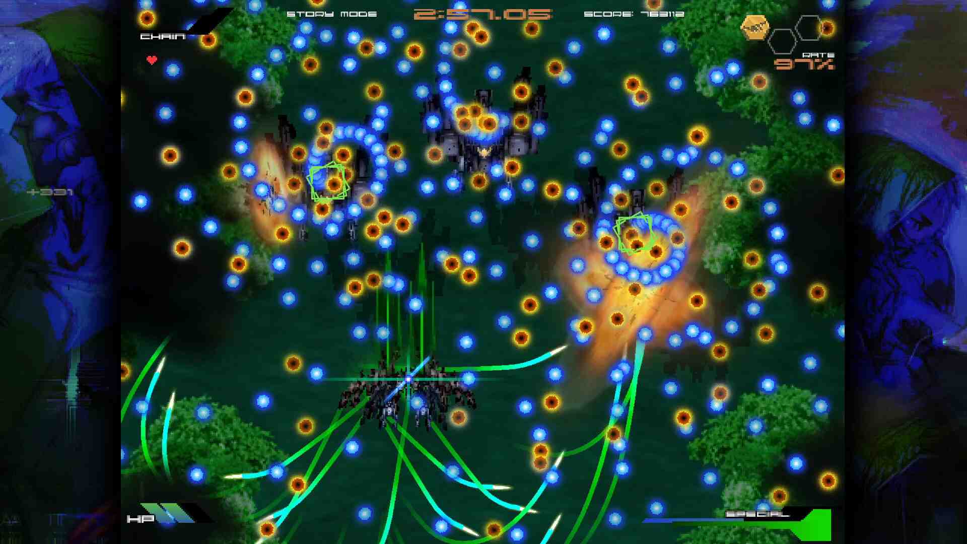 BIRDCAGE is a fast-paced, vertical scrolling shoot ‘em up that blends the explosive action of 90s arcade classics, with modern gameplay and storytelling. In BIRDCAGE, the player controls the experimental RADON gunship HALCYON. The HALCYON is equipped with a wide shot, focus shot, and its main offensive and defensive weapon, The SWORD. BIRDCAGE features an engaging sci-fi story, set in a divergent human future. Inspired by games like Metal Gear Solid, BIRDCAGE touches on futuristic science and technology, political and military power struggles and the nature of the human unconscious mind. Story Mode, the game’s main mode is set across six stages featuring mid-bosses, stage bosses and narrative interludes. Arcade Mode is Story Mode without the narrative, aimed at letting players go after score in a quicker, more convenient way.