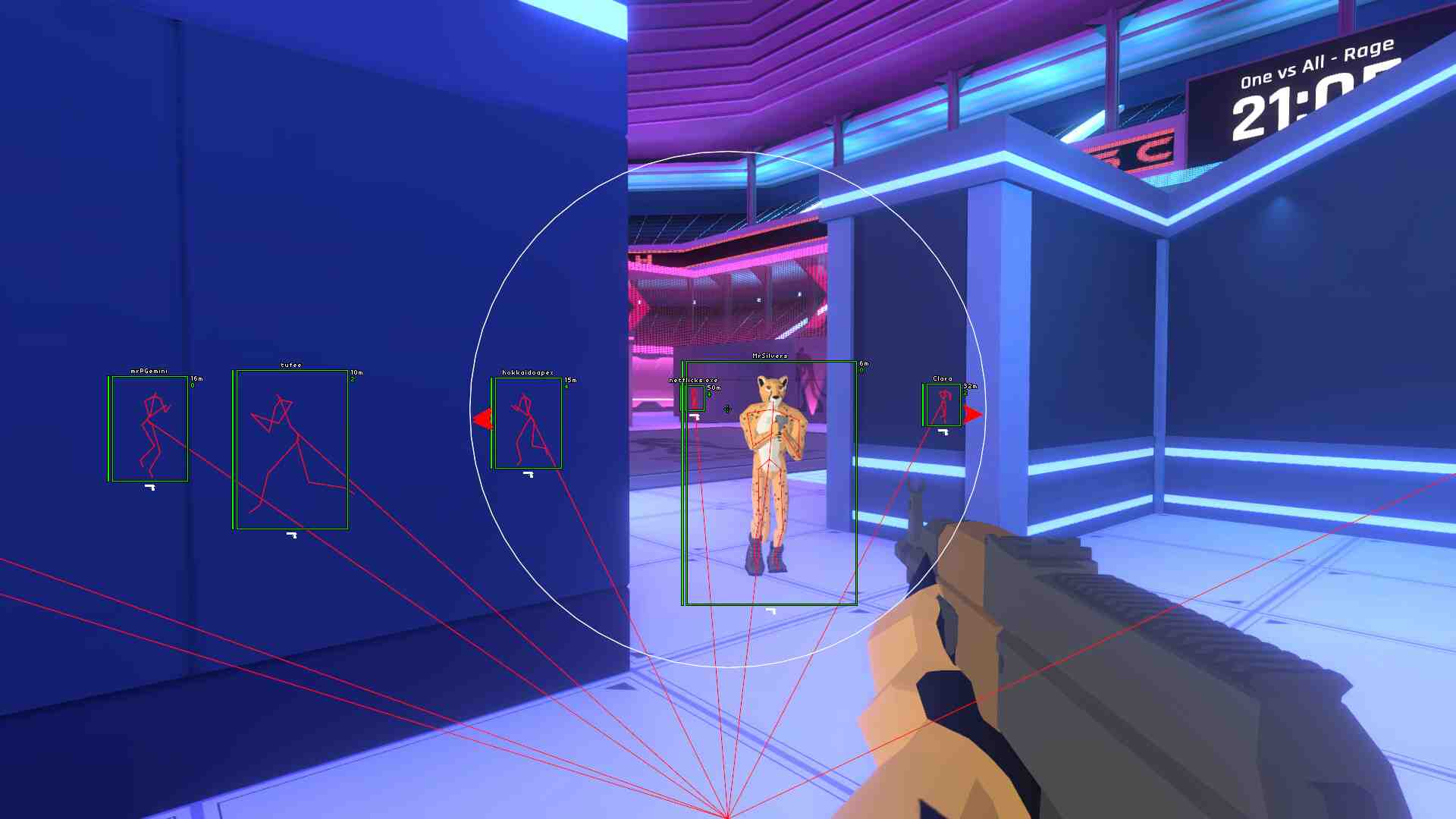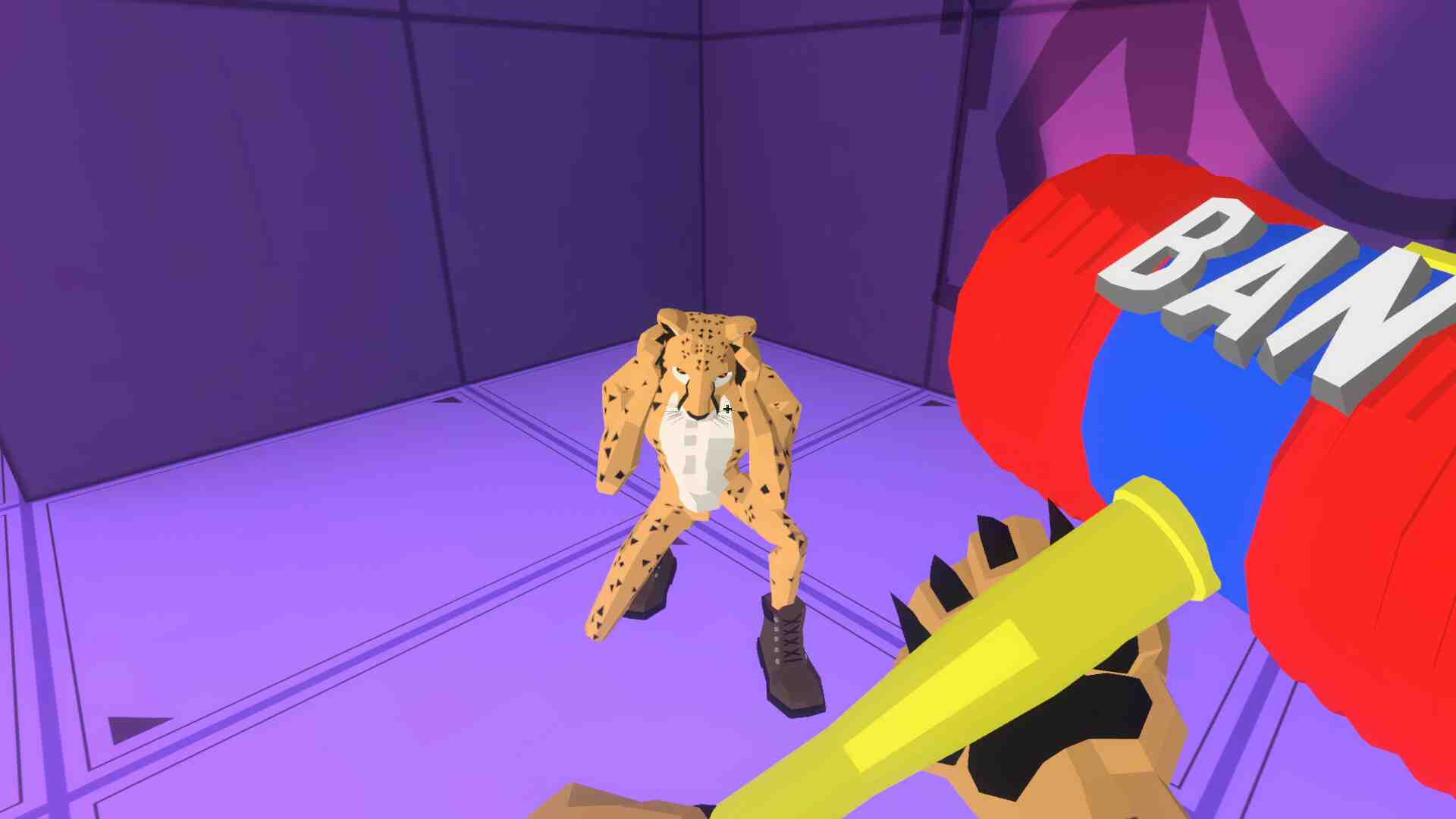 Choose your config and dive into the chaos: “Legit cheat” where everyone only has wallhacks, or the “Rage cheat” where every feature is unlocked! From the classic deathmatch to a “Raid boss” mode where multiple legit cheaters team up against 1 rage cheater, Cheaters Cheetah also offers a variety of unique game modes to choose from. The game also features a single player mode, where you can demolish innocent bots as a rage cheater! The game is set in a prison for former cheaters, who were caught using cheats in a popular online FPS. Transformed into cheetahs, they are forced to participate in a game show “Cheaters Cheetah” as a punishment.