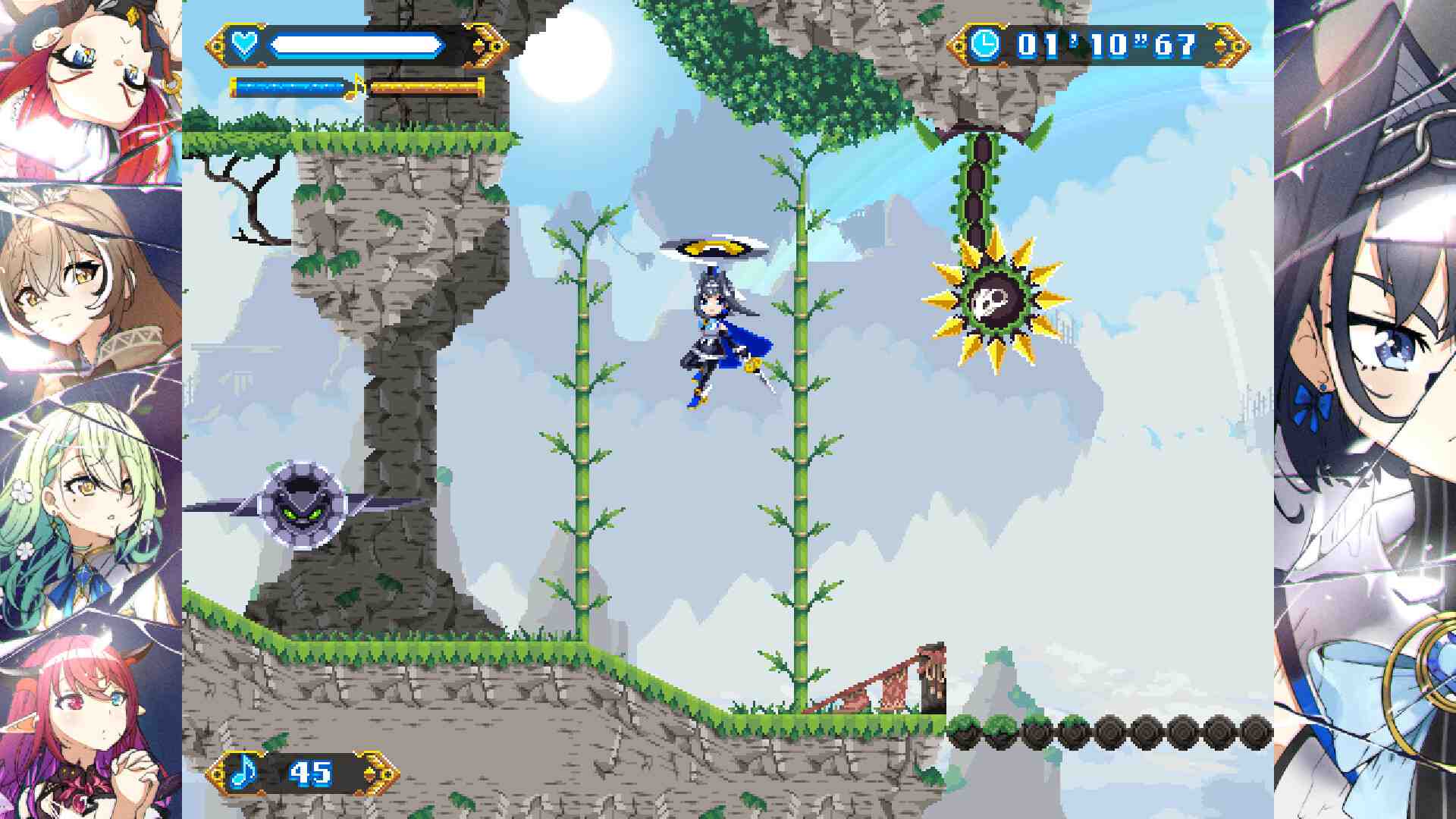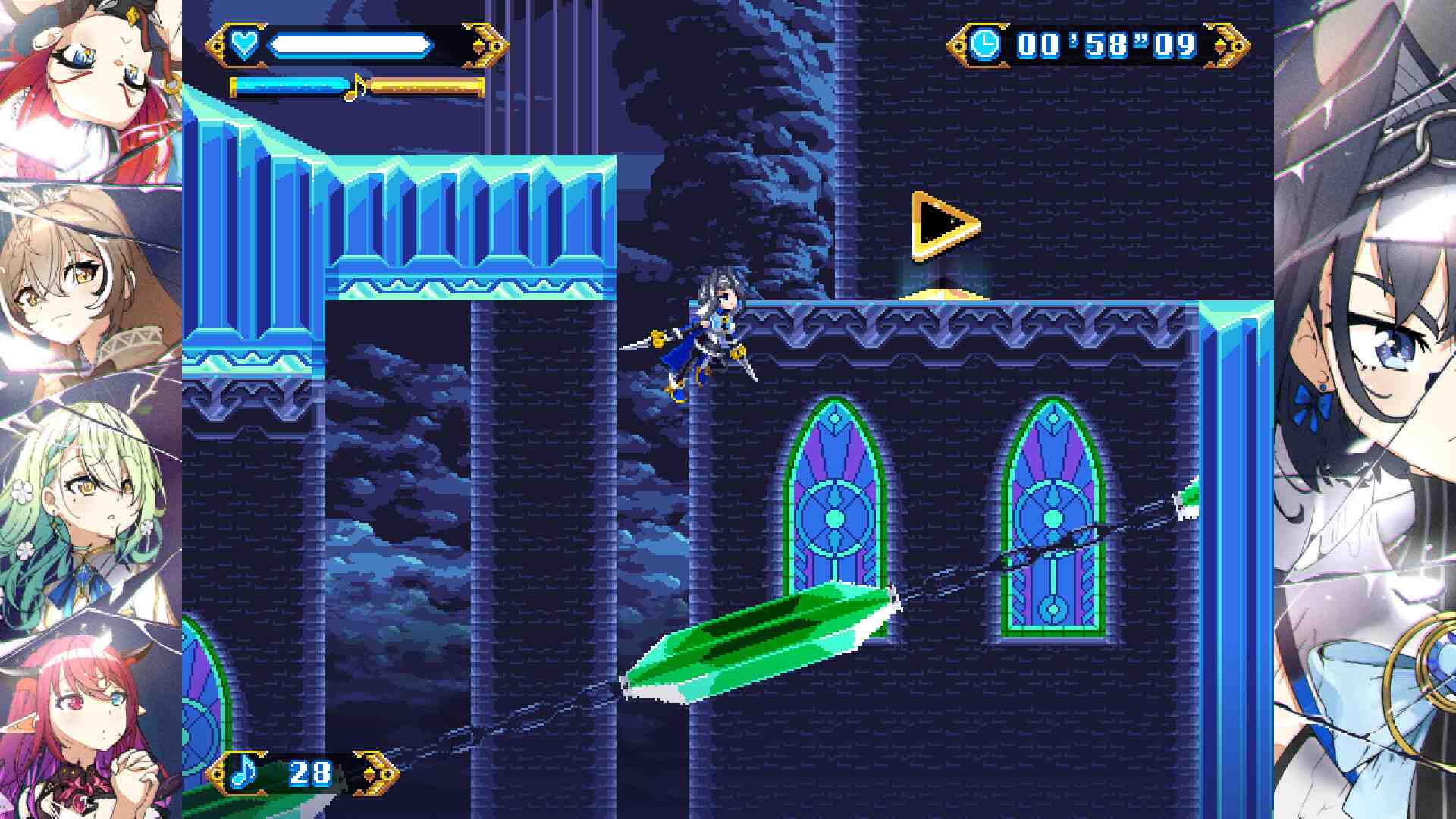 You are Ouro Kronii, the Warden of Time. Your desire to become the strongest being in the universe led to the creation of the Chrono Gear, an artifact with the power to preserve timelines. But where power lies, evil will seek to control it. A fierce battle against the demonic Alter Laplus has shattered the Chrono Gear, scattering its Golden Gears across the stars. As Kronii, you must fight against the darkness that shattered your universe, find the Golden Gears, and repair the space-time continuum. Chrono Gear: Warden of Time is a retro 2D action game that mixes speedy platforming and sword combat with explorable hub areas and a dramatic story.