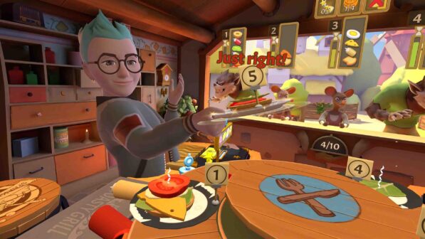 Get your aprons ready… things are about to get messy in this award-winning multiplayer VR cooking game from Resolution Games! Set within the cook’s cabin of a fairytale forest, Cook-Out: A Sandwich Tale is a wacky and whimsical adventure – brought to you by the creators of Angry Birds VR: Isle of Pigs, Bait! and Blaston – that challenges up to four players to work together to keep the orders coming for a hungry cast of enchanted creatures in this multiplayer VR game. As players progress through increasingly hectic levels, they not only prepare meals but also need to fight off a number of nasty customers who seem absolutely set on making trouble — like jesters who will hide parts of orders, or thieves who will keep pilfering ingredients.