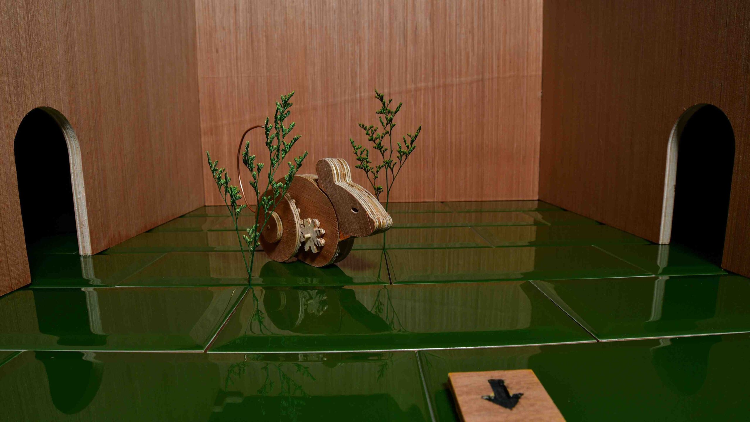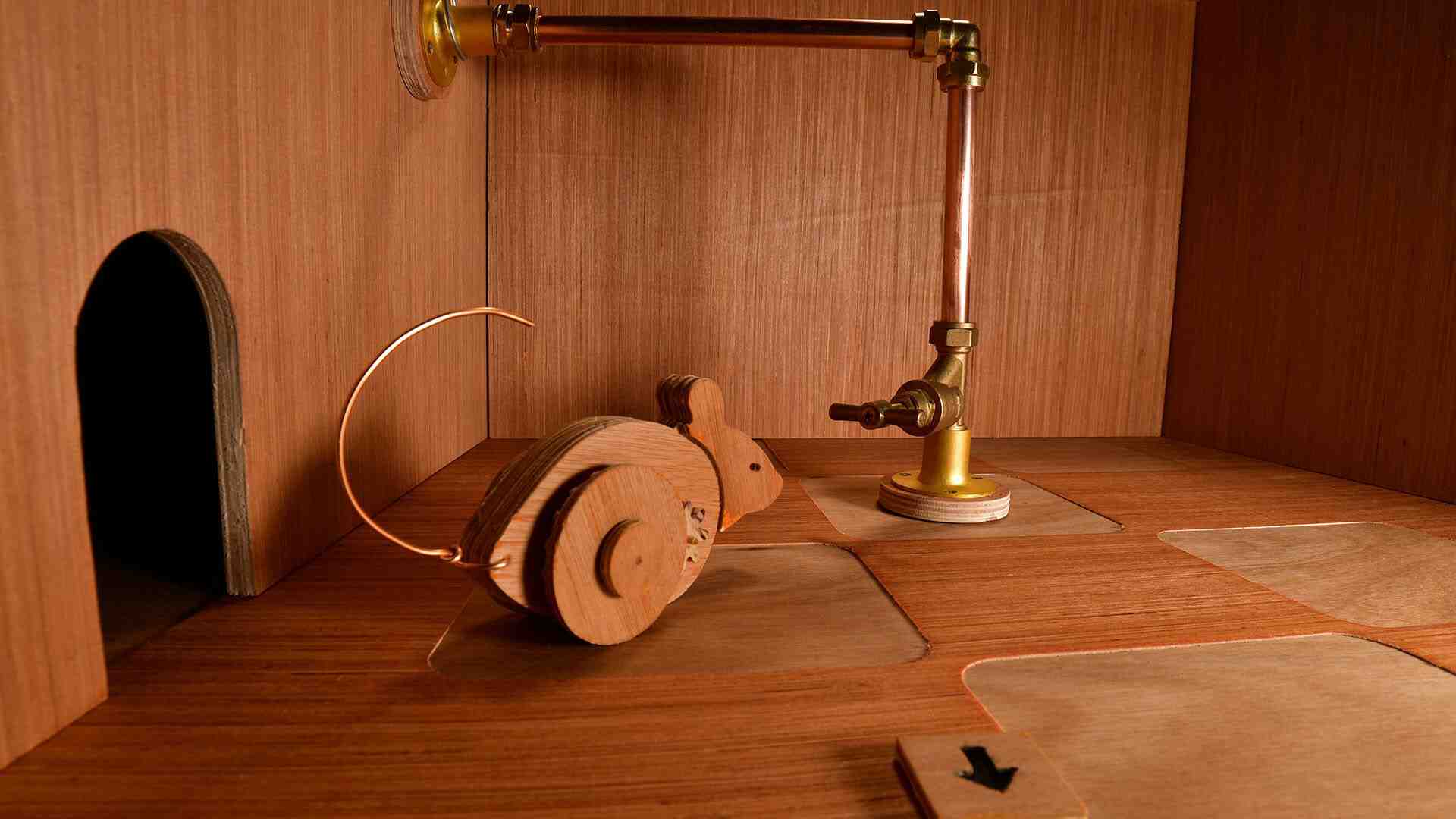- Guide a wooden, clockwork mouse from the maze’s center to its outer edges.