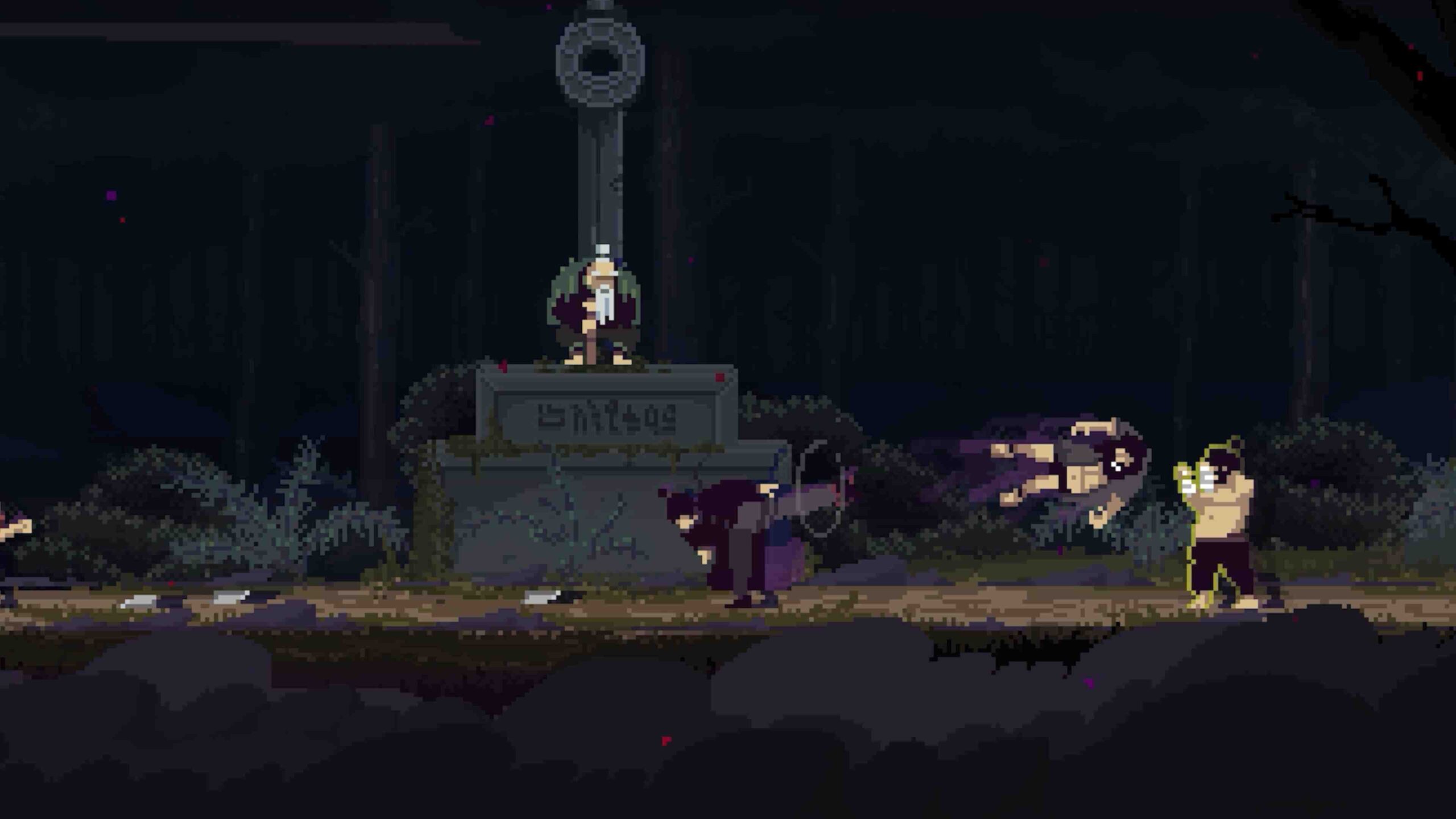 - Handcrafted fantasy world: pixel-art visuals, atmospheric landscapes, and detailed, animated characters.