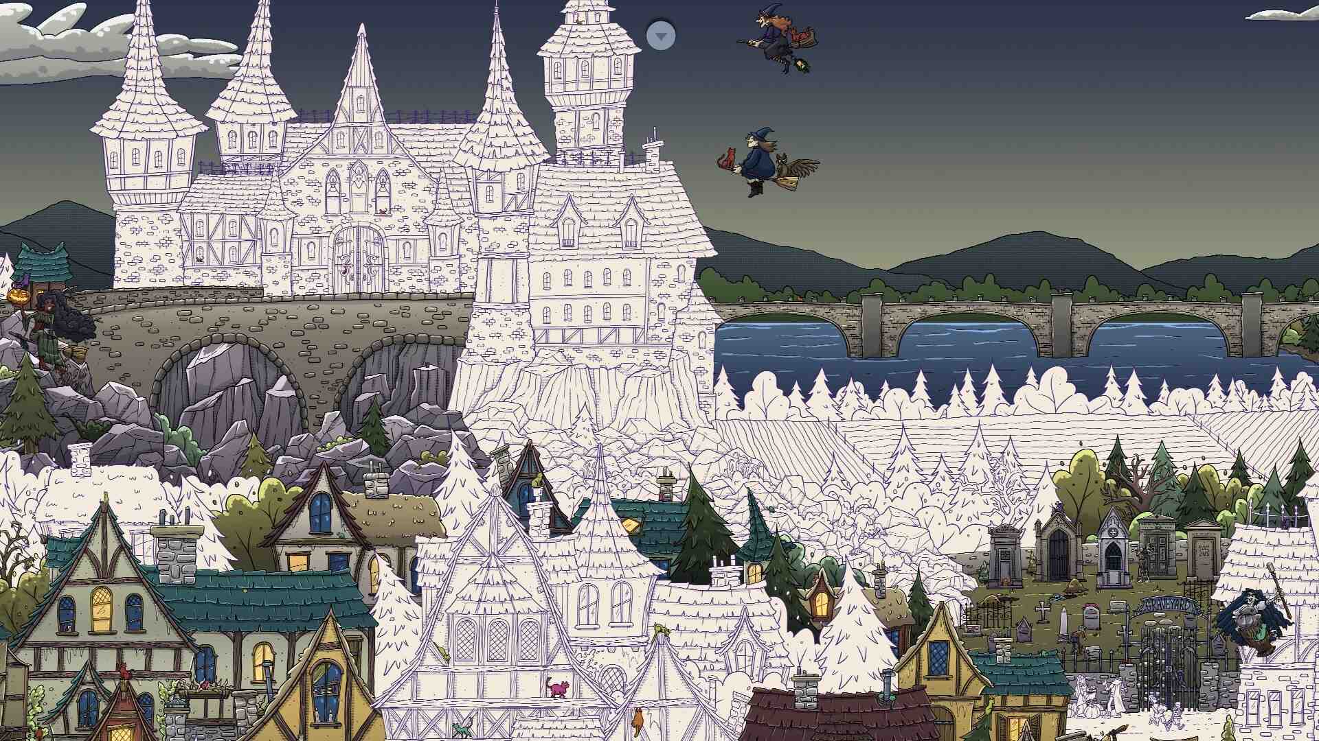 The first map gradually colors itself as you complete each section, which feels super rewarding. There’s a handy hint system, dark mode, adorable art, collectible cards, and even meowing cues to guide you toward any unfound cats. The soundtrack is soothing, achievements are clean and manageable, and your progress saves perfectly. It’s overflowing with charm and content, while keeping things friendly for all ages. Hidden Cats in Spooky Village is the perfect Halloween comfort game: cozy, cute, and packed with purring little secrets.