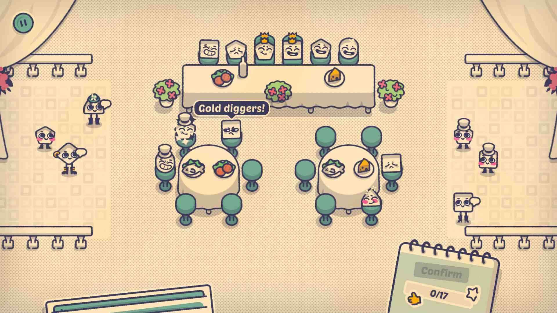 - Play seating matchmaker to please picky characters.
