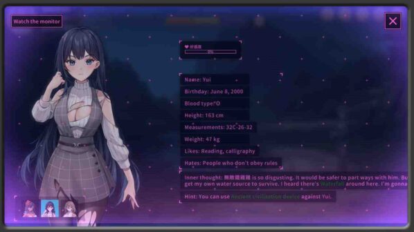 Island Sex and Survival Video Game Character is over the age of 20. Content Warning: “Island, Sex & Survival” content includes images and descriptions of sexual organs, sexual intercourse, and BDSM, etc. You began a new life on the mysterious deserted island after drifting there due to a shipwreck, starting from scratch. Building a base, exploring different areas of the island, living alongside various female characters you encounter, and experiencing all sorts of miraculous events. Interesting survival, ultimate cultivation Let’s talk about survival first. Because the protagonist has such high-level guidance as the player, it can be said that daily life on the island is not a problem at all – the player only needs to collect the resources that can be collected on the island and interact once in an interactive place.