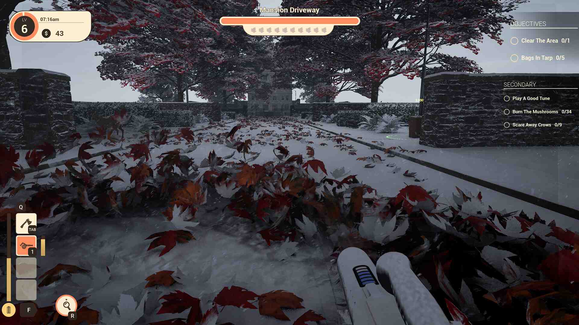 Feel the true satisfaction of restoring peace and tranquility after a job well done; get in the zone as you blow away anything out of place; and lose yourself as you wander through a host of warm and welcoming locales. Each location has a selection of optional bonus objectives and hidden easter eggs throughout to reward exploration of every nook and cranny. It’ll take a keen eye and knowledge of all the tools at your disposal to find them all! When you’ve finished the Campaign, look no further than Free Play mode to satisfy that Leaf Blowing itch. With the ability to choose whatever location takes your fancy, your perfect weather conditions, and your ideal time of day, the choice is completely up to you. From a snowy morning on the beach to a glorious sunset in the park, and everything in between, play Leaf Blower Co. your way!