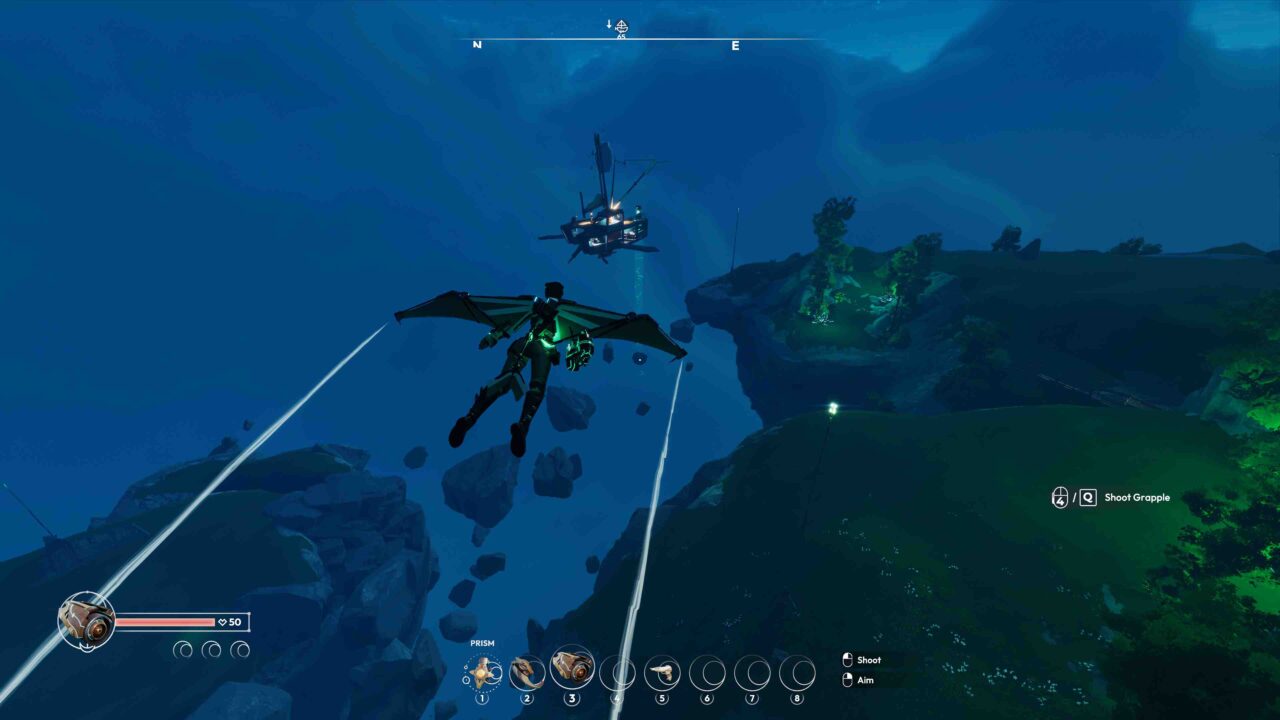 This isn’t just your vessel, it’s your home and your weapon. With Lost Skies’ deep ship crafting system, you can place parts freely to construct a flying fortress that’s as unique as your imagination. You’ll need to balance durability, agility, and firepower as you tailor your ship to face the challenges ahead. No two skyships are the same, so let your creativity take flight! Why just fly when you can glide, grapple, and climb your way through the skies? Scale sharp cliff faces or traverse the floating islands of Lost Skies with a physics-based grappling hook, hang glider, and wingsuit that makes every leap and bound exhilarating. Explore seamlessly, moving freely between distant horizons and breathtaking landmarks. This world isn’t just beautiful, it’s yours to conquer, one daring move at a time.