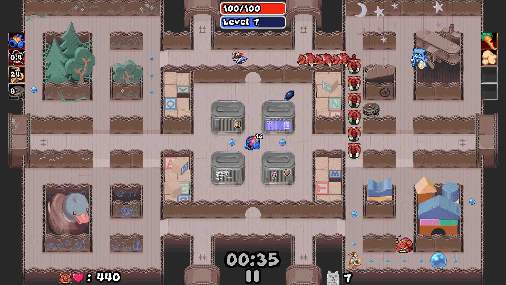 - Tons of upgrades to unlock and pick from.