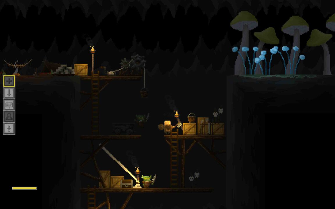 Ever wonder what would happen if Kingdom met a broad, skill based open world RPG? Welcome to Regions of Ruin. Regions of Ruin is a 2D side-scrolling RPG with town-building where you are introduced to an open world that progressively challenges your hero and settlement the further you delve into the vast continent. You will discover a foreboding land ravaged by hundreds of years of hardship. Where, kingdoms have risen and fallen, settlements have been laid to waste and overrun by warring groups, and great mysteries lay hidden and waiting to be unearthed – assuming you can defeat their jealous guardians. This is a 2D sidescroller RPG with light settlement management elements, you explore points on a world map that each represent a quasi dungeon that you explore, loot and defeat enemies in, once they are all gone you can send your workers from your capital into the dungeons to harvest resources. The King is Watching