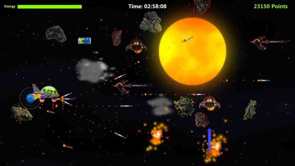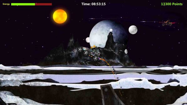 Combat missions against UFOs and alien fighters. Dodge the asteroids with red lines and push the ones with green lines. Rescue, search, mazes, balance and skill. Shoot and bomb. Its power, speed and jump vary depending on the planet we are on and its gravity. Destroy the enemy bikes, complete the mission before the timer reaches zero, run. Its functionality is very very fun.