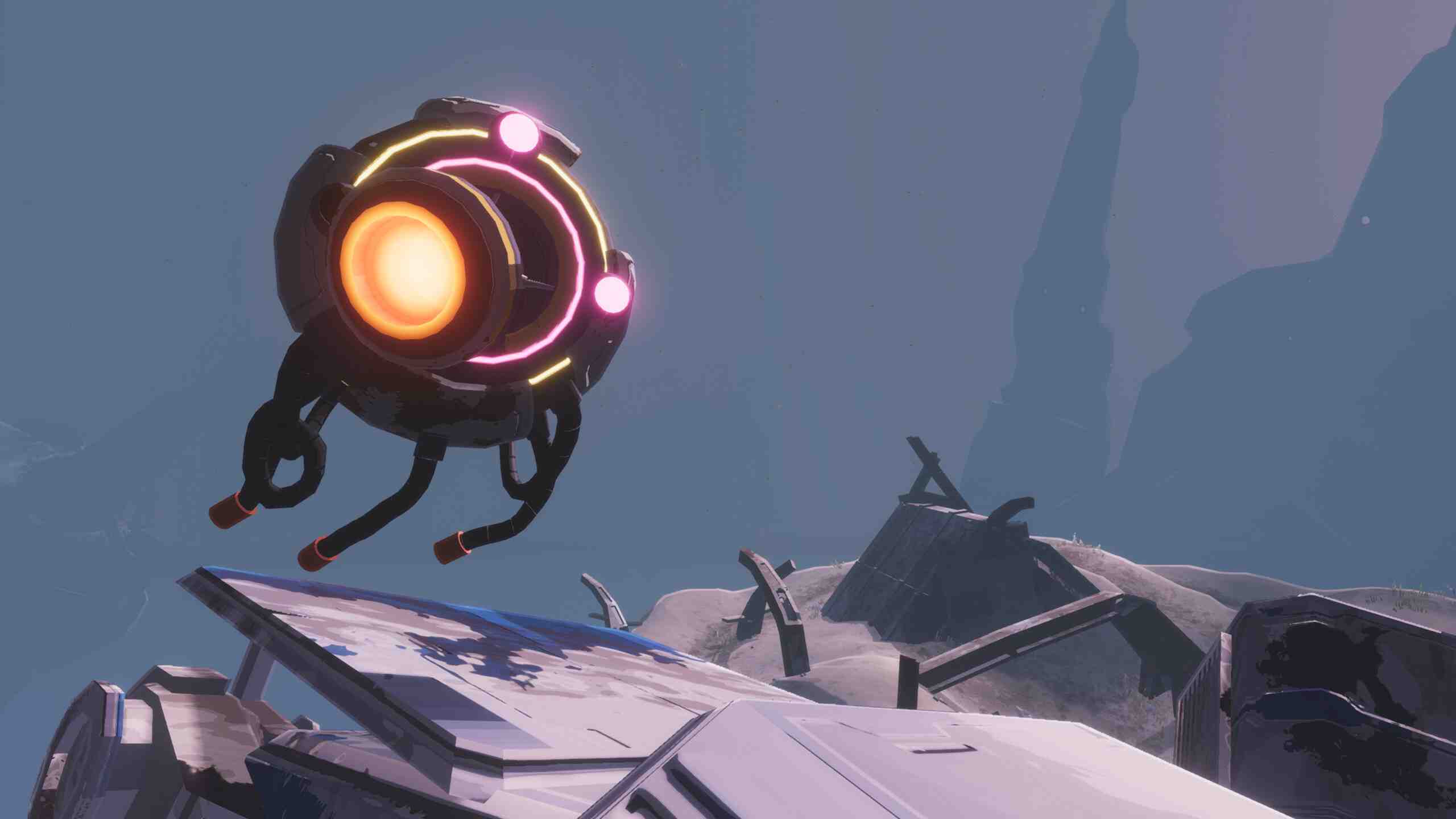 Emerge from Pretender’s Precipice and arrive at the Iron Alluvium. This desert mining outpost has a habit of reminding you that it was built for machines, not interlopers. One hulking drill grinds deeper into the heart of Petrichor V. Survive and be rewarded with loot scattered through winding caves where iron veins once ran. Do everything right and you’ll break into the cable-strewn peaks of Conduit Canyon. Find a way to hook the power nodes back up, venture down the canyon, and take on a foe unlike anything Petrichor V has ever seen. Every drone under Operator’s control is a tool waiting to be unleashed. Command a companion to launch you skyward and rain destruction from above, or overcharge it and send it hurtling into a crowd to blow them apart.