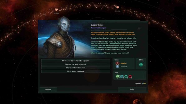 MEET GALACTIC HEROES Attract paragons of renown to your council: unique leaders with their own art, events, and stories may join your empire and bring their own benefits to your government. Or, discover four Legendary Paragons with intricate event chains and unique mechanics! A new “Under One Rule” Origin that tells the tale of the leader who founded your empire Eight new Civics focused on leadership, from immortalizing the personalities of leaders past in digital archives to heavily optimized council selection via corporate charter.