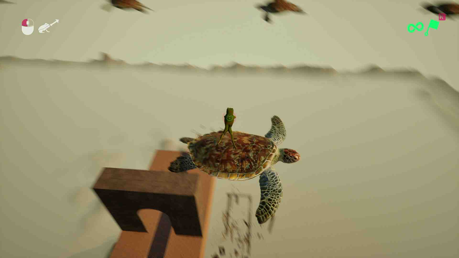 - Use Frogus’ tongue as a grappling hook to climb a vertical world ravaged by humanity.