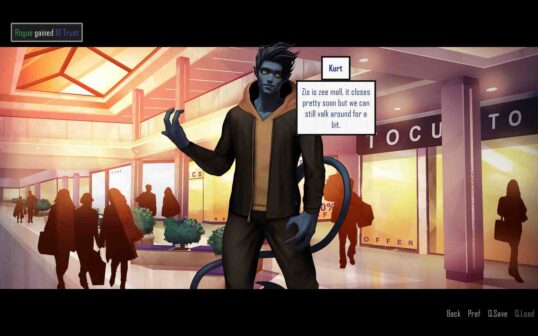 The Null Hypothesis this Ren’Py adventure/dating simulation game is set in the X-Men universe. The comics are a major source of inspiration for us. If the developers hadn’t played and been influenced by Oni’s Rogue-Like: Evolution, this game wouldn’t exist. The game is really boring. The mansion and its menus make it seem as though navigating them requires more steps than is necessary. The game isn’t flowing, so even though the music and images are fantastic, I don’t want to play it. When the navigation problems are fixed and the user experience is improved, this game will become unbeatable; until then, it will fast become frustrating. I thought the ambiance was great, and that the game was built on a Rogue-like story with an emphasis on X-Men lore—possibly better than the Marvel universe.