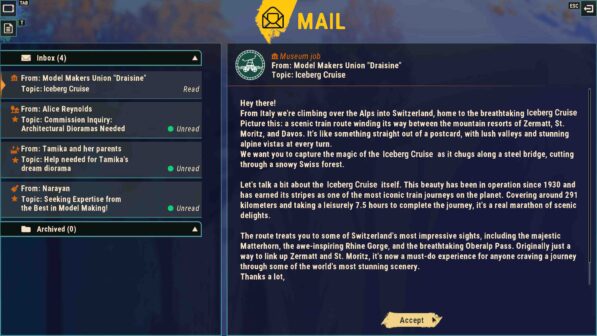 Then this gem of a game comes out for less than $20 and I gotta say it’s definitely an itch-scratcher. I haven’t gotten too deep into it yet, and there are little bugs here and there which is understandable for day 0, but the whole thing (artwork, music, premise) is just adorable and makes me happy. It’s basically House Flipper 2 but you’ve retreated from the outside world to build model trains in your grandpas basement…which is not a tough sell. It’s a great game, I can play with my 2 year old, it’s cheap, and I’m happy to support the developers. Easy recommend. The only potential concern I have is if there’s not enough trains and rolling stock and scenery items to pick from, but I haven’t even tried sandbox mode yet so I don’t know exactly how much there is to play with.