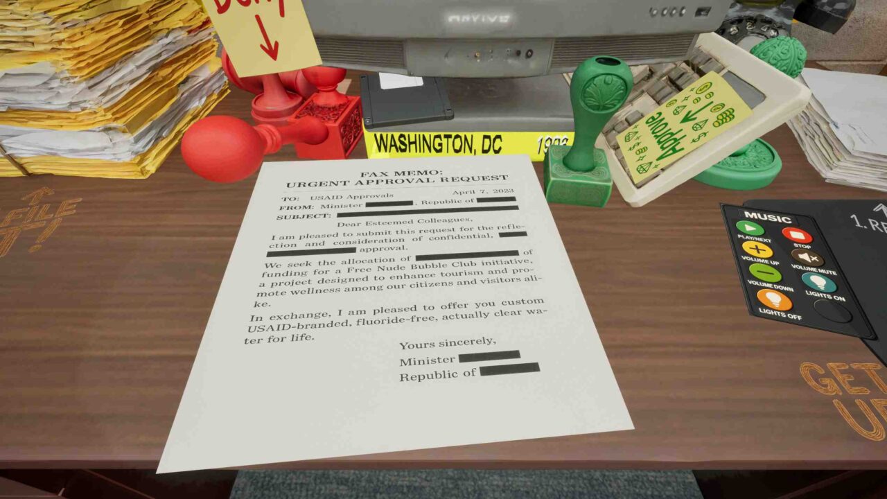 Miss a redaction and hear the thunder of your boss’s scolding. Forget to “File It!” and you’ll learn that in this office, one slip-up means a one-way trip to HR’s darkest corner. Slip away on a luxury yacht, vanish via your hidden mini-sub, use the golden parachute from a private jet ride, or jump out of a helicopter and sink in the open ocean to your death out of guilt for your crimes against the people. How much loot can you pocket before DOGE’s investigators catch up, or will the guilt take over first? Relaxed-Paced ASMR STYLE Clicker Gameplay: Process a handful of faxes, then take a well-earned “vacation” (or hide in plain sight).