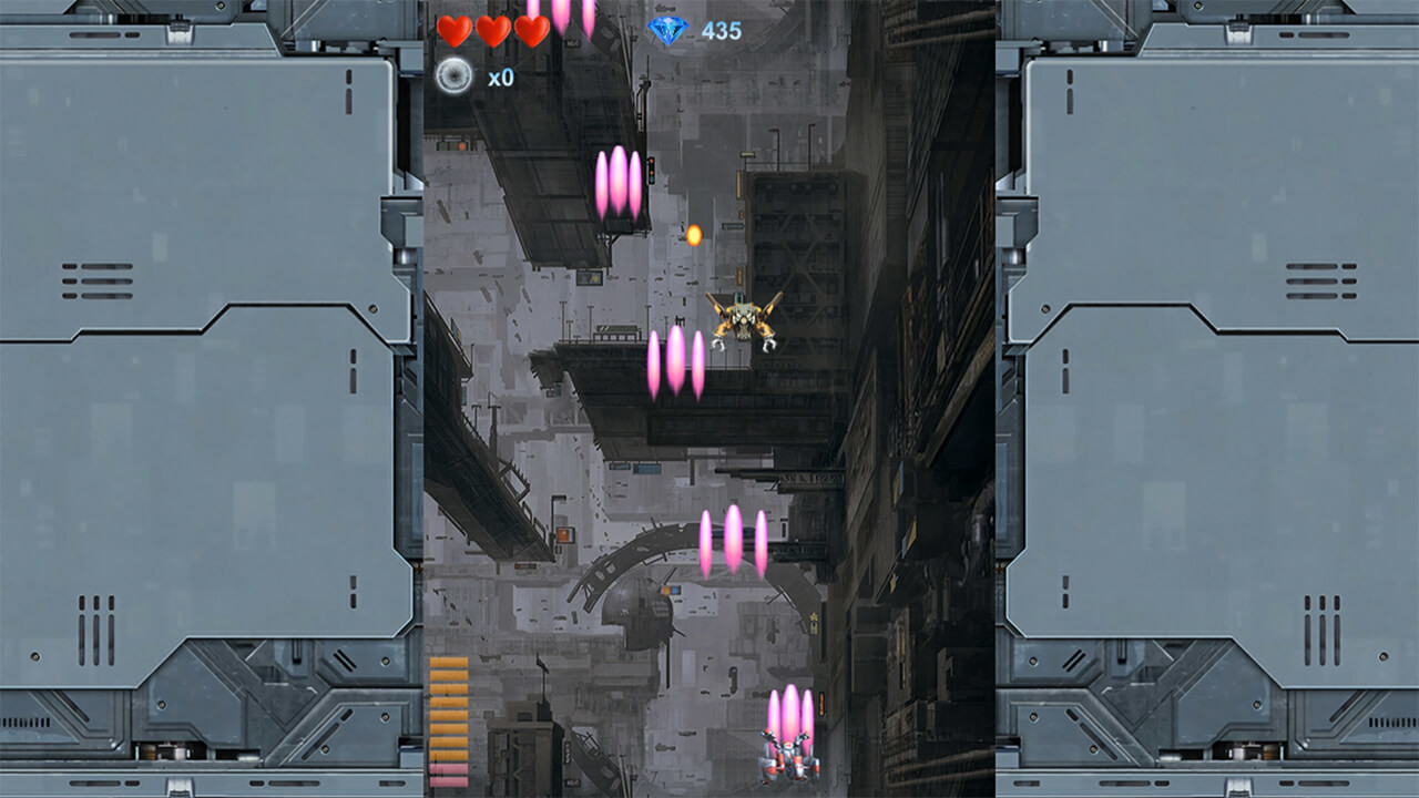 Players can get diamonds by destroying enemy aircraft, and diamonds can upgrade the protagonist’s fighter aircraft in the supply station. The types that can be upgraded include the number of bullets, the power of bullets, lasers, protective shields, large-scale attack weapons, and so on. Players can gain experience when hitting an enemy aircraft. After the experience is over, the fighter’s main and secondary guns will be upgraded. After reaching the maximum level, the protagonist has a chance to enter the blood state.